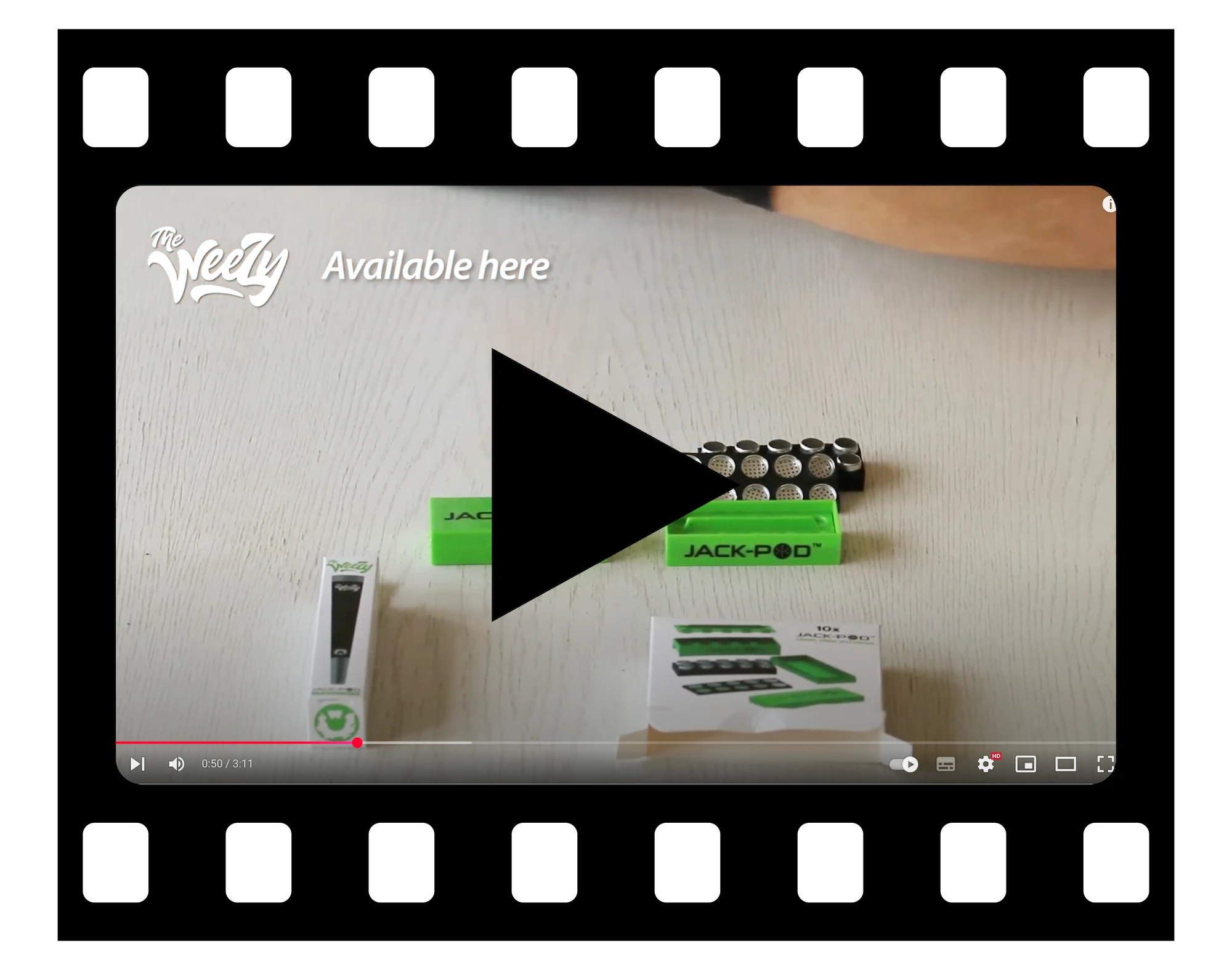 Het standaard Weezy™ herbruikbare capsule is voor meerdere keren gebruiken (gewoon schoonmaken na 5-10 sessies), terwijl JackPod™ een wegwerpcapsule is voor maximale gemak. Beide werken in alle Weezy's, maar hebben verschillende doelen - herbruikbaar voor milieubewuste gebruikers, JackPods voor onderweg.